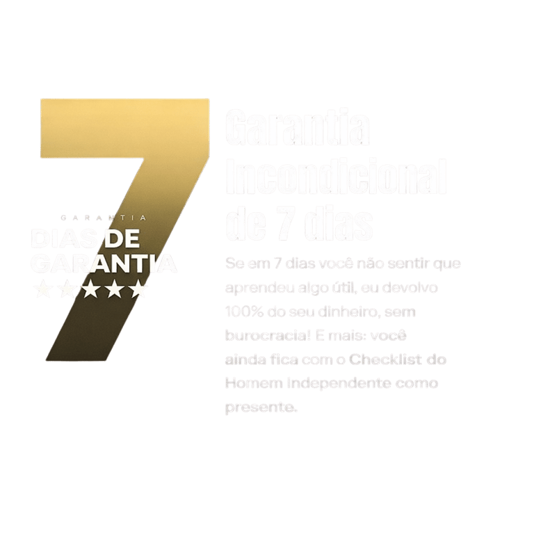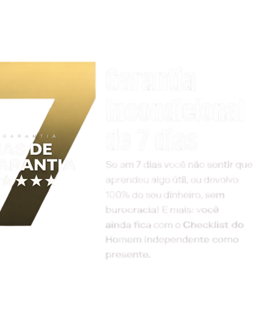 Se em 7 dias você achar que não aprendeu nada útil, eu devolvo 100% do seu dinheiro, sem nenhuma burocracia! Você ainda leva todos os bônus de presente.